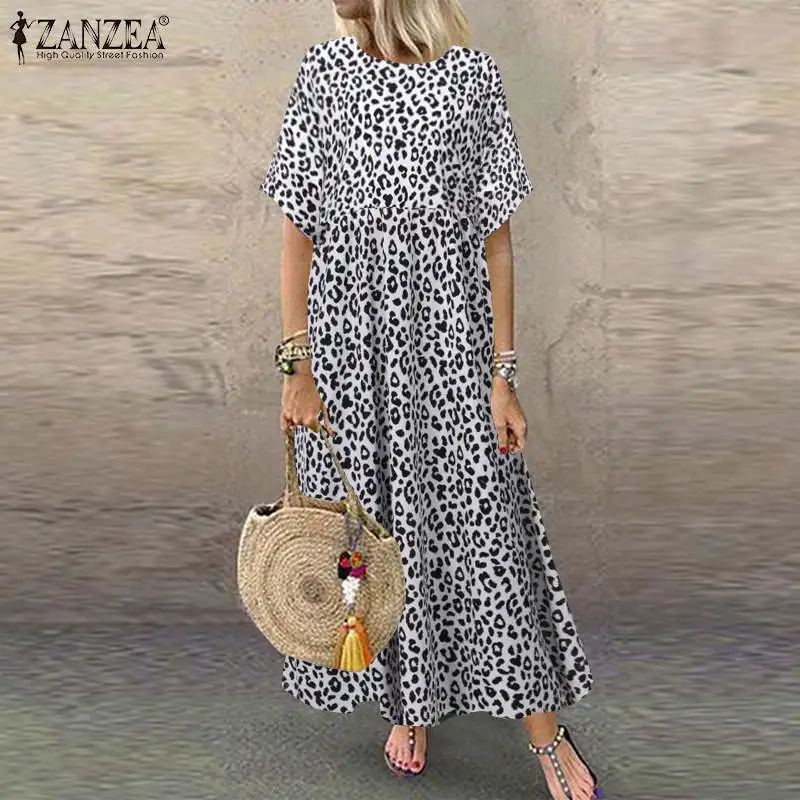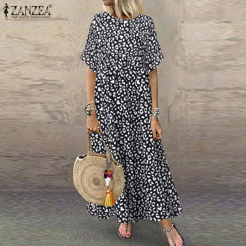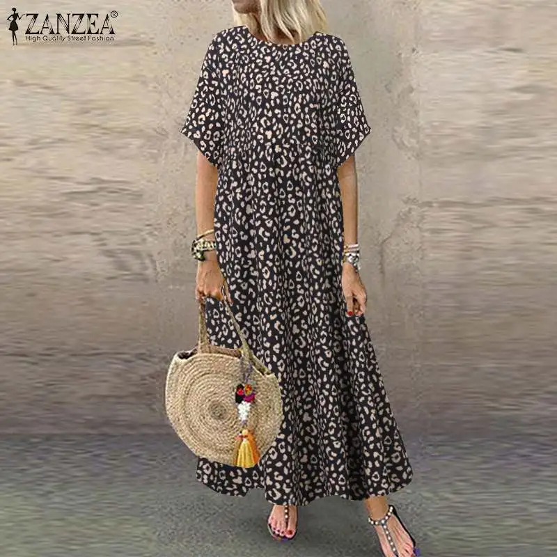 M 5XL ZANZEA Fashion Bohemian Sundress Summer Short Sleeve Dress Women Casual Leopard Printed Party