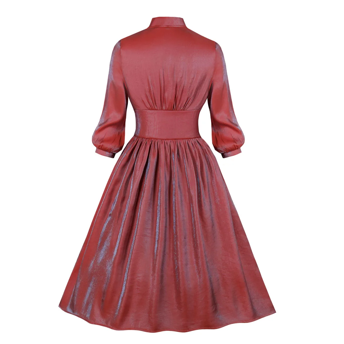 Women Retro Midi Dress Solid 60s Pin Up Rockabilly Swing Dress 2020 Spring Autumn Button Party Vest