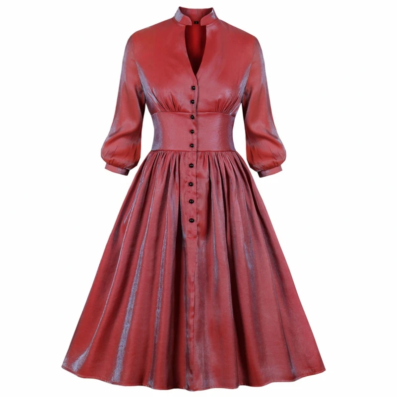 ORIGINAL Women Retro Midi Dress Solid 60s Pin Up Rockabilly Swing Dress 2020 Spring Autumn Button Party Vest