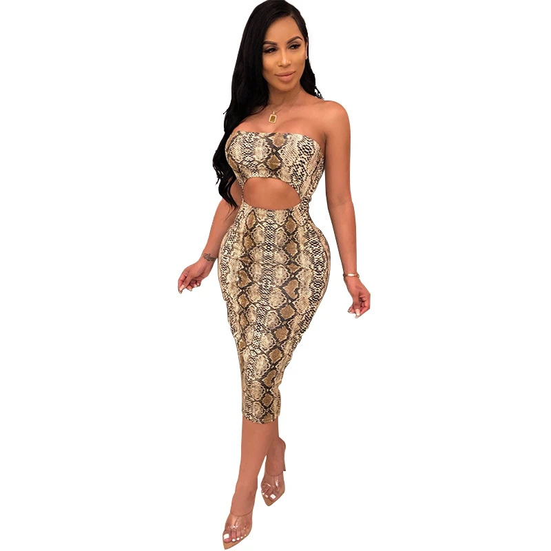 TOP Adogirl Snakeskin Print Cutout Women Strapless Dress Fashion Sexy Sleeveless Bodycon Midi Night Clu
